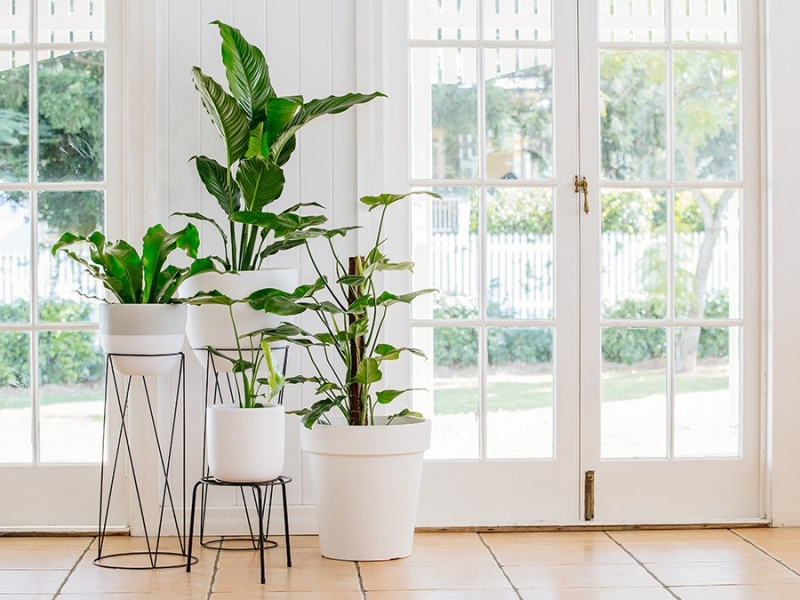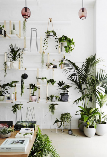 Remember décor in the 80’s and 90’s? Cane furniture, pot plants by the dozen hanging from macramé’s and palms in the corners in shiny pottery planters……. As I write this, I shudder from those memories of dusting the leaves and trying to keep them alive – I hated them…………..but love or hate them – Indoor pot plants have made a comeback in the interior décor world – especially over-sized ones.